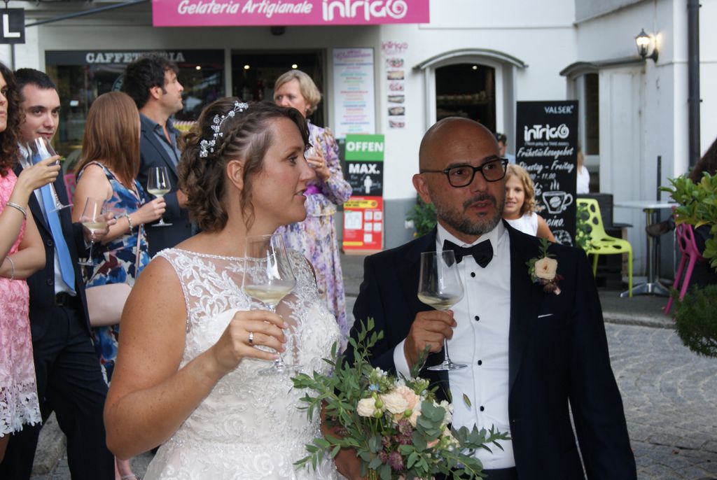 2020-09-11 Boda Ale & Sandra -- Brindis delante del hotel Schwann